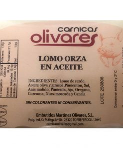 Lomo de Orza fileteado. Típico de Jaén. Se conserva en aceite. No falta en la mesa de todo Jaén en particular en la zona de Úbeda y en la Sierra de Cazorla. También te puede interesar comprar lomo de orza en tacos de 1 Kg. para poderlo trocear a tu gusto.