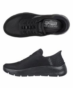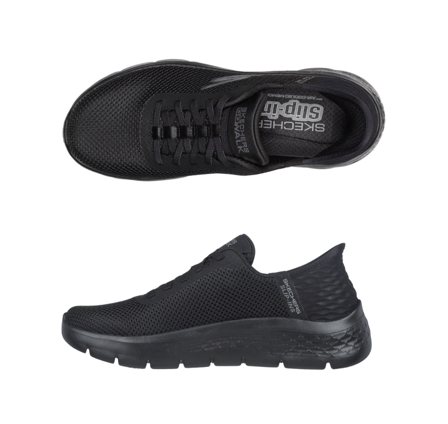Disfruta de la comodidad y la amortiguación que te ofrece la Skechers Hands Free Slip-ins®: GO WALK Flex™ – Grand Entry. Estas deportivas veganas sin cordones, diseñadas con nuestro sistema Heel Pillow™, cuentan con una parte superior de tejido sintético y malla con cordones elásticos, una plantilla Skechers Air-Cooled Memory Foam™ y amortiguación ligera ULTRA GO®
