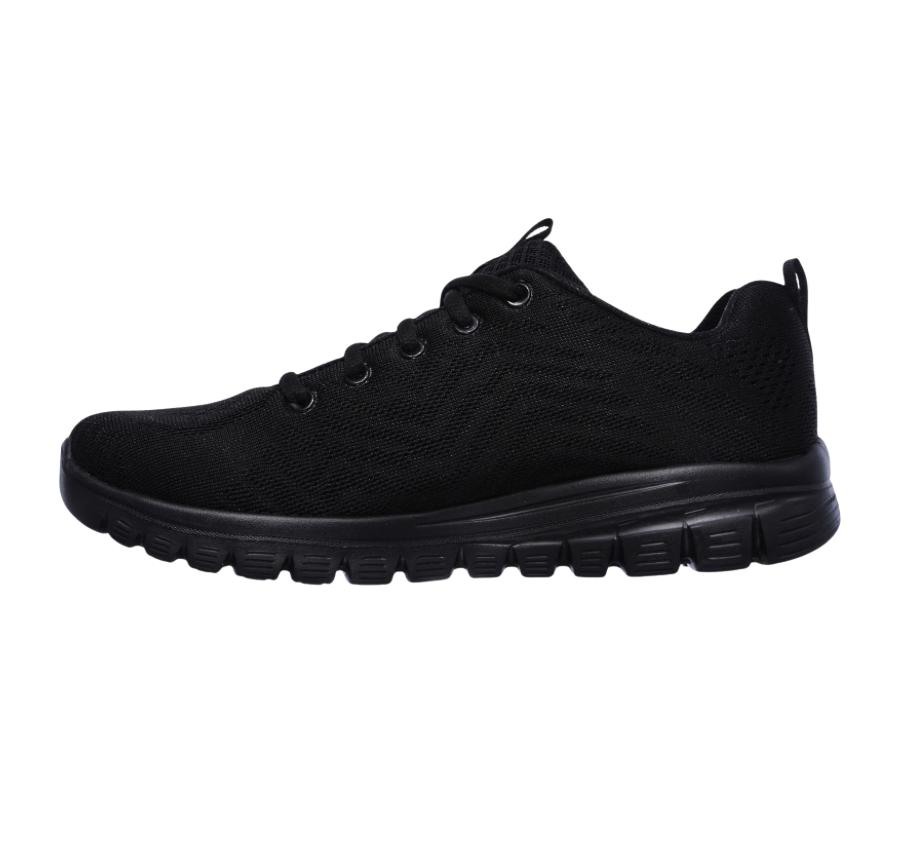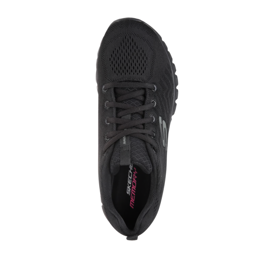 Ir al gimnasio sin tener que cargar con otro par de zapatos nunca fue tan fácil gracias al modelo SKECHERS Graceful – Get Connected. Parte superior de malla Skech Knit de una sola pieza en un calzado deportivo con cordones, capas superpuestas y costuras. Plantilla Memory Foam.