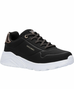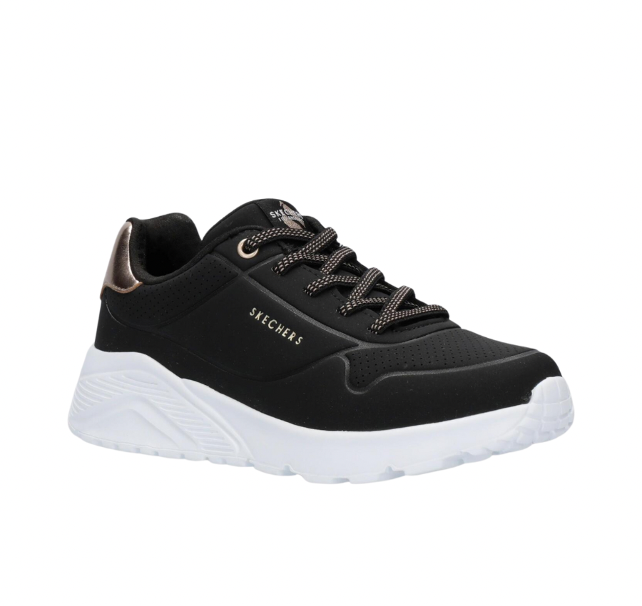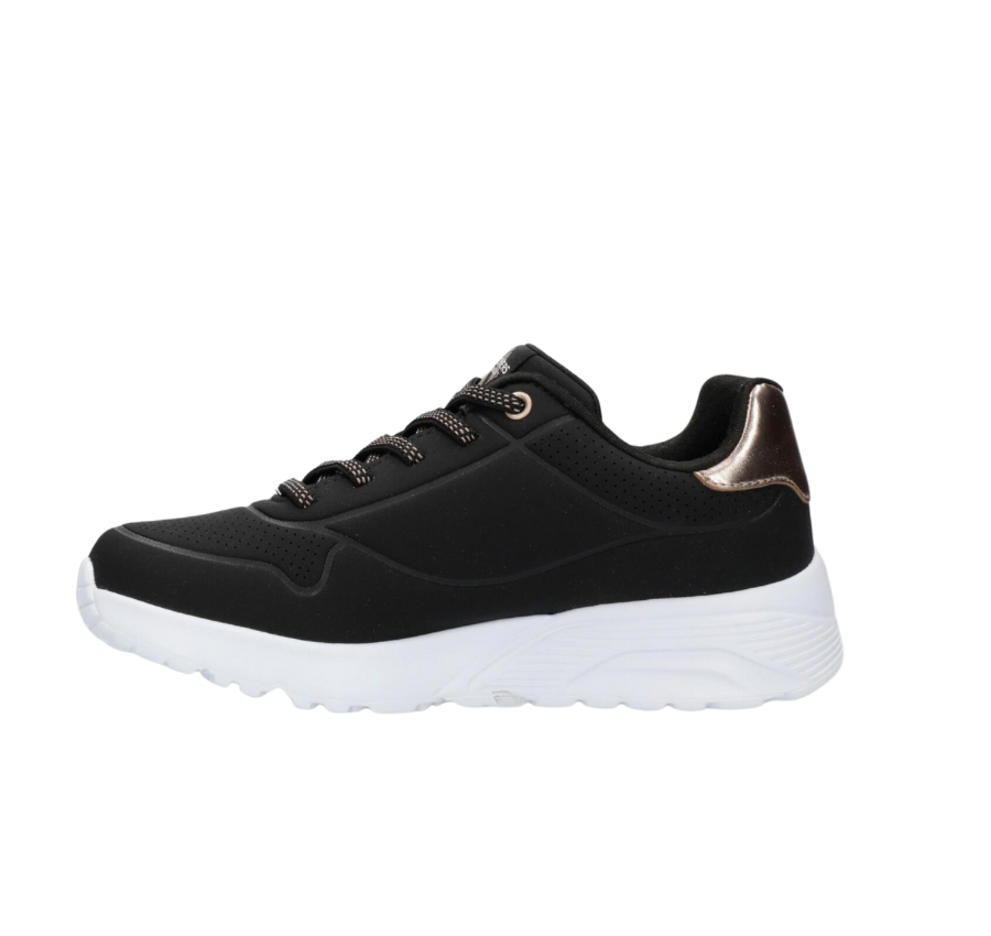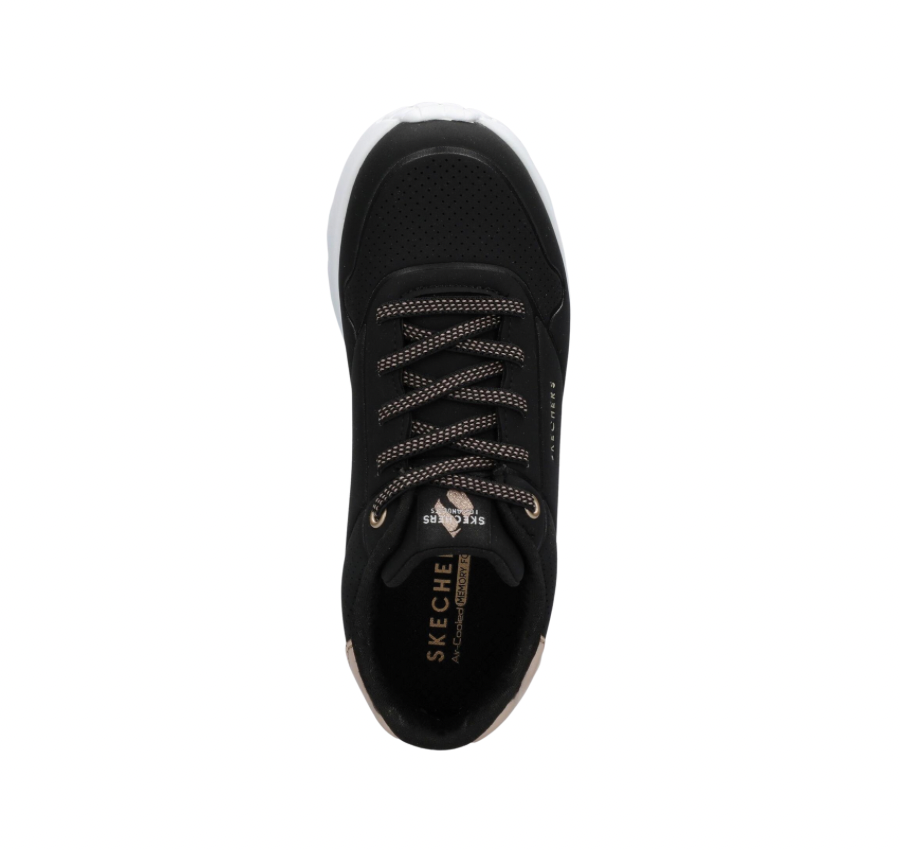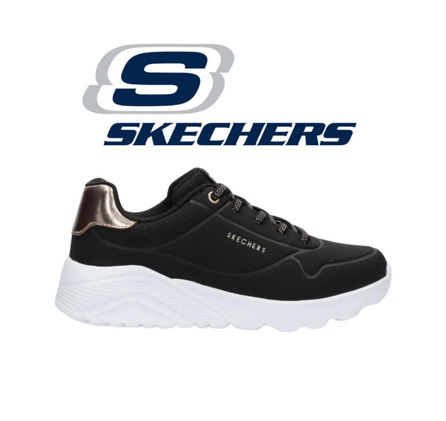 Disfruta ya de un estilo clásico con la comodidad de la Skechers Street™ Uno – Shimmer Along. Esta moderna zapatilla presenta una parte superior de durabuck sintético y con un ribete metálico, cordones elásticos, plantilla Skechers Air-Cooled Memory Foam® y media suela visible Skech-Air®.