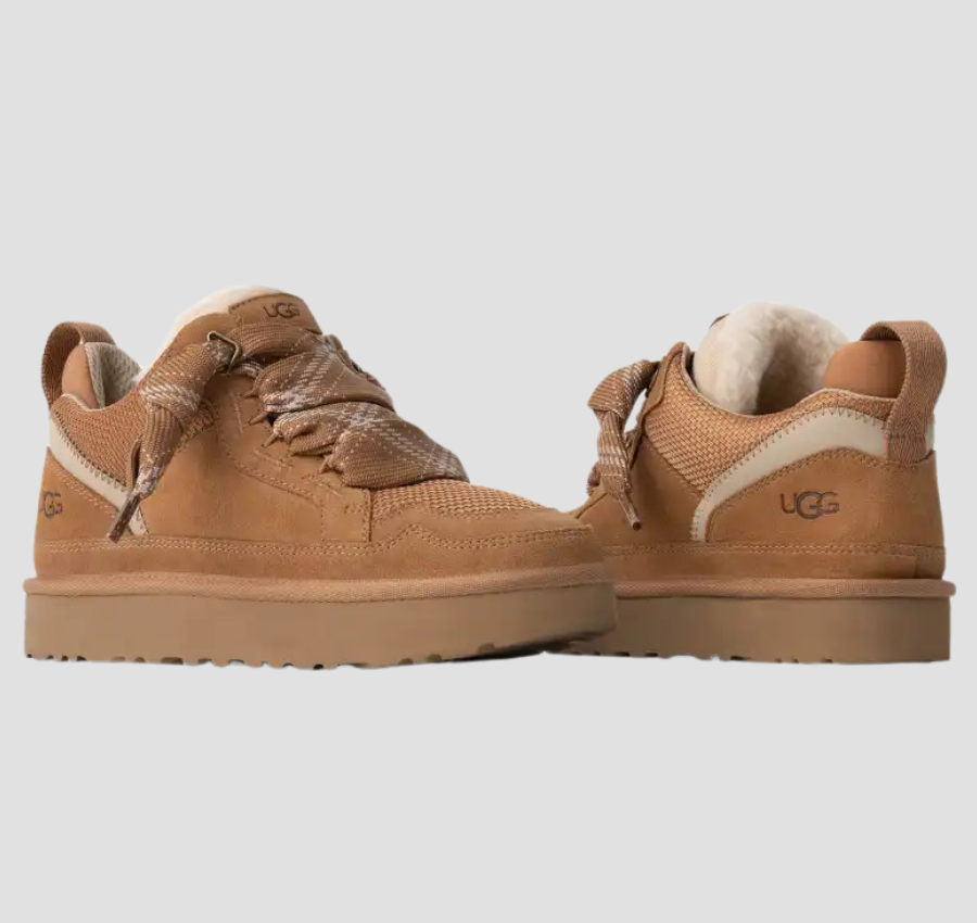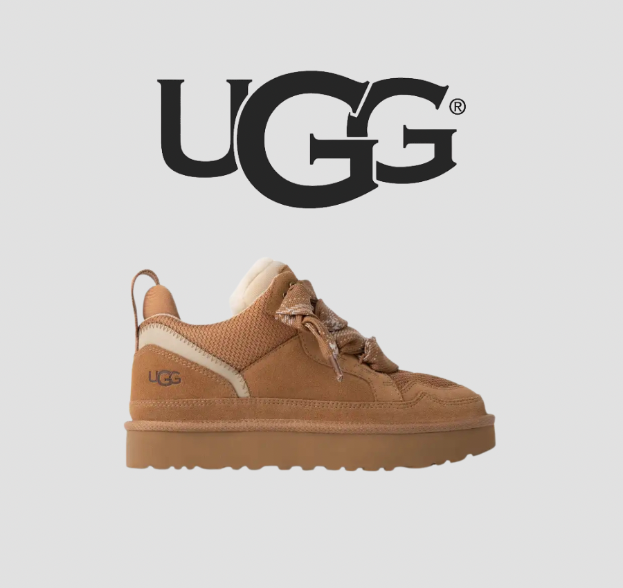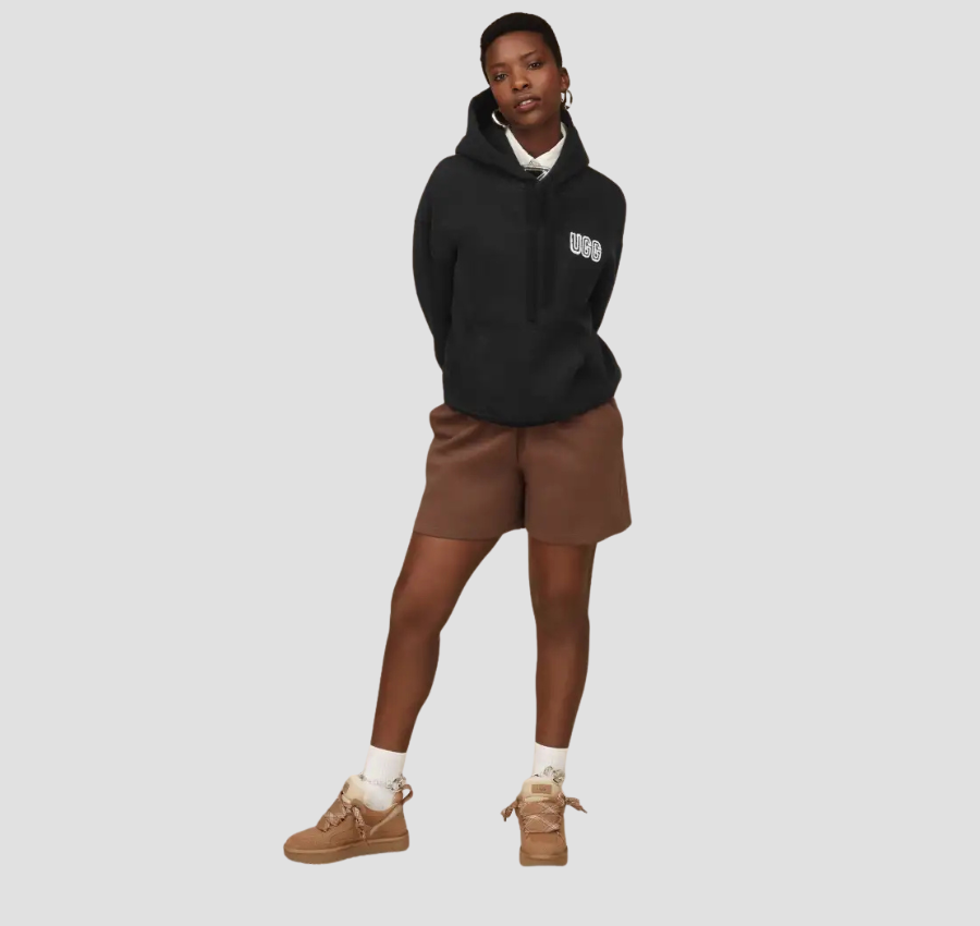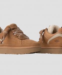 - Malla de lona balística reciclada, empeine de ante, correa de cincha en el talón, parche con el logotipo de UGG®, cuello acolchado, lengüeta acolchada extragrande